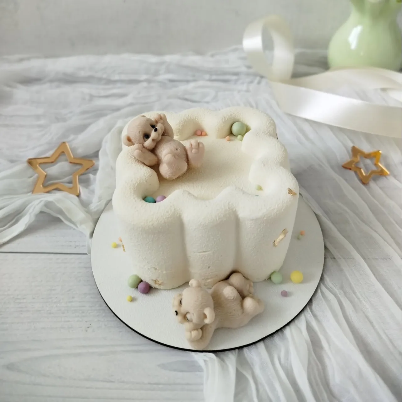 Нежный муссовый бенто‑торт с милыми медвежатами — идеальный десерт на День рождения ребёнка или семейный праздник. В основе — лёгкий творожный мусс с карамельной начинкой, торт весит около 620 г и рассчитан на 2–4 порции.