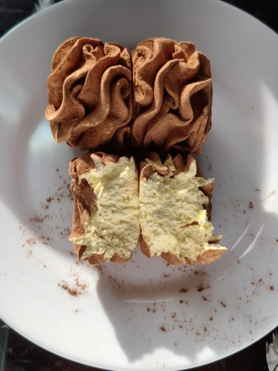 Зефир изготавливается из натурального яблочно-бананового пюре, содержит минимальное количество сахара, обваливается в натуральном какао.