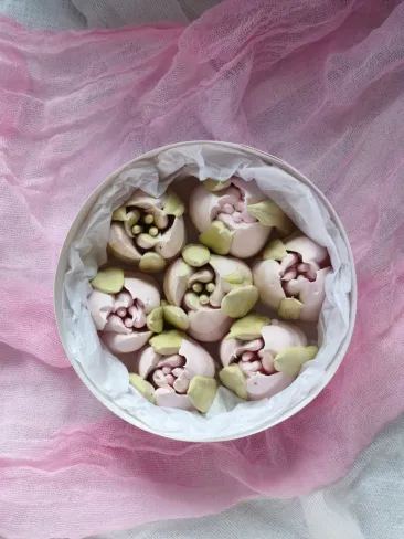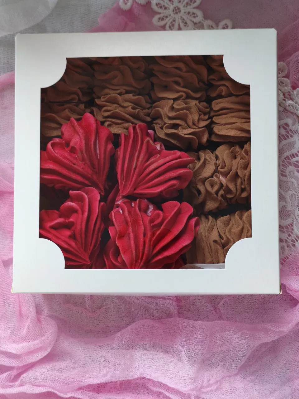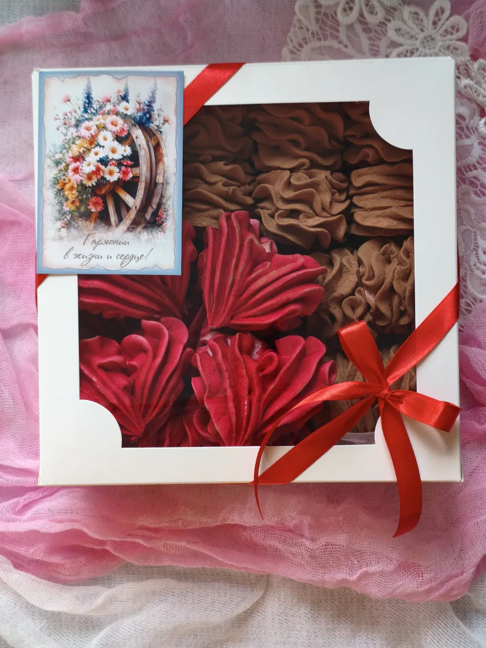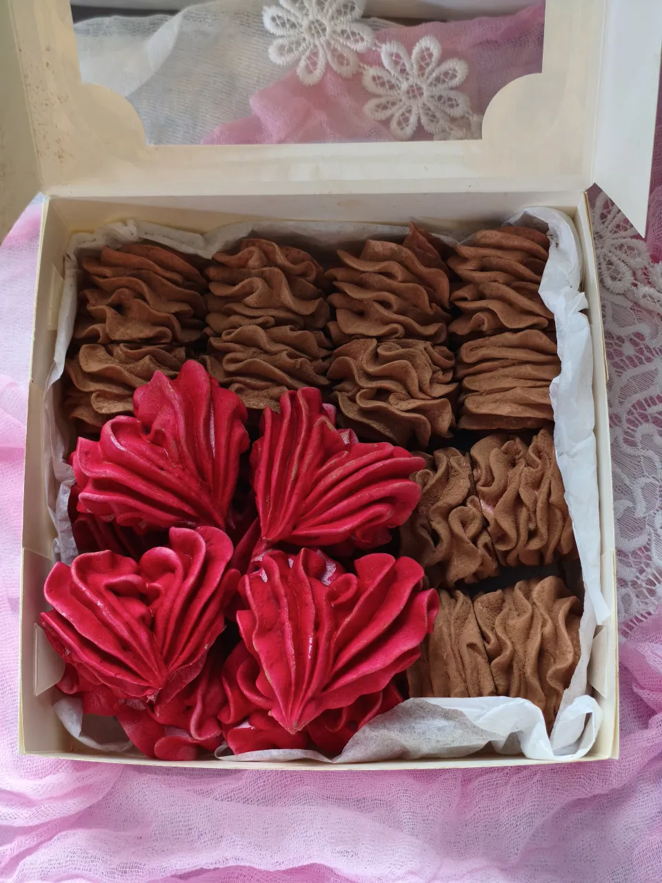 Очень вкусный, яркий, праздничный набор завитков и сердечек из вишнёвого зефира.