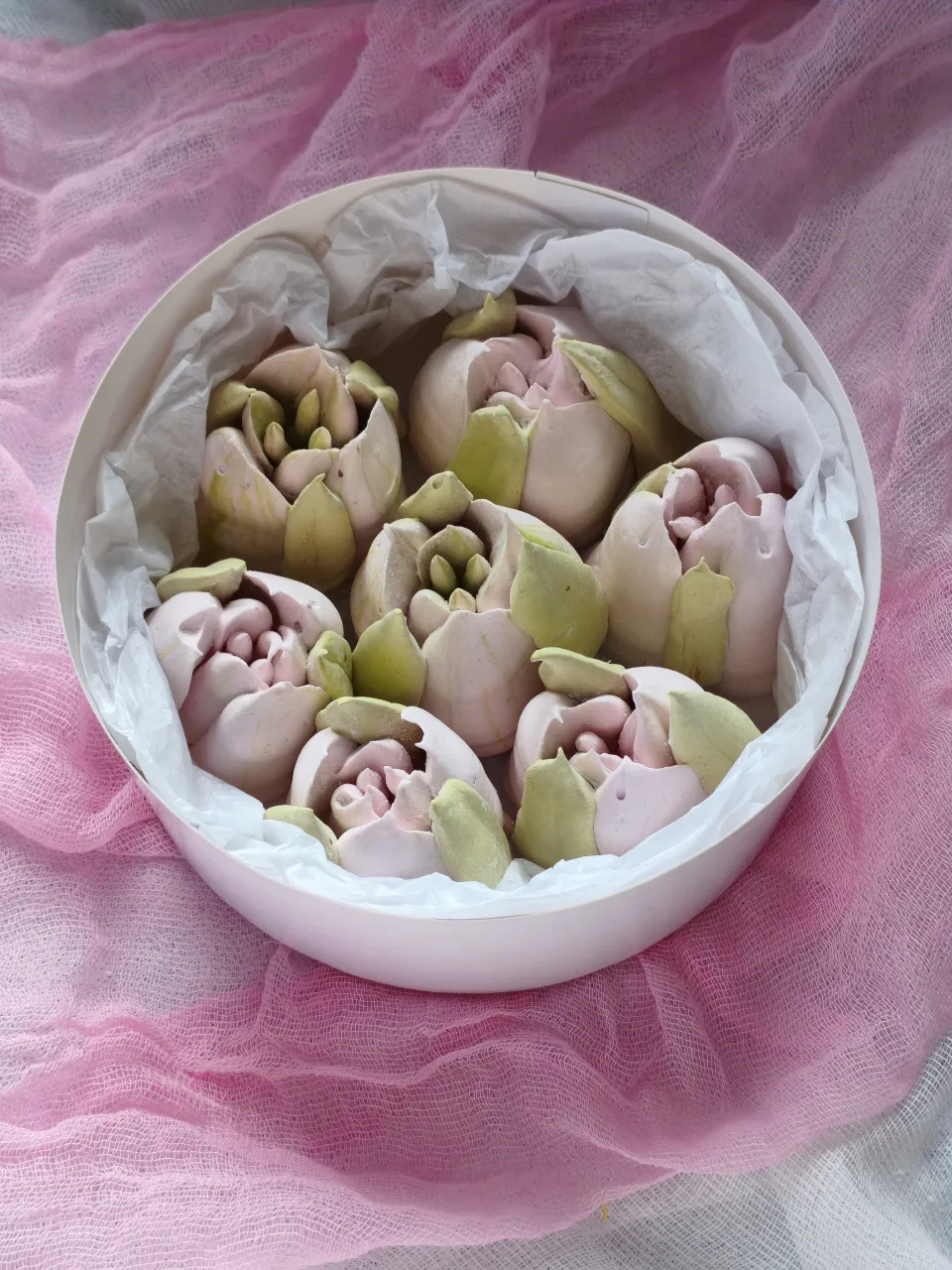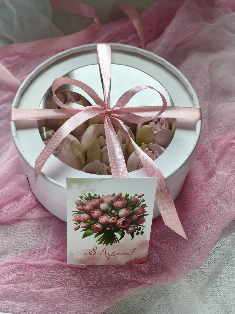 Коробочка тюльпанов из яблочно-ванильного зефира отличная замена букета живых цветов в подарок к любому празднику!