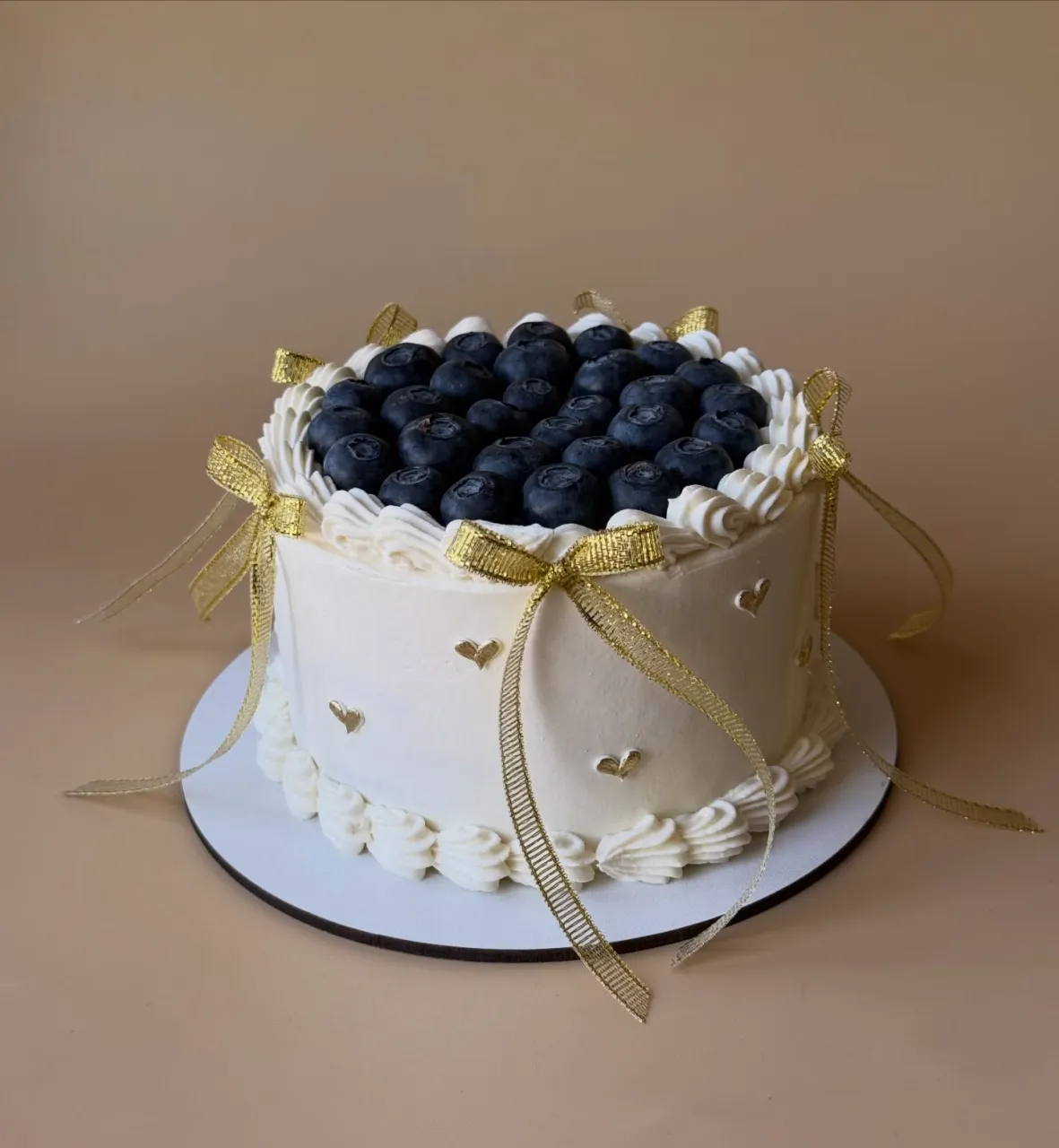 Стильный белый торт с ягодами и бантиками. Вес - около 1 кг.