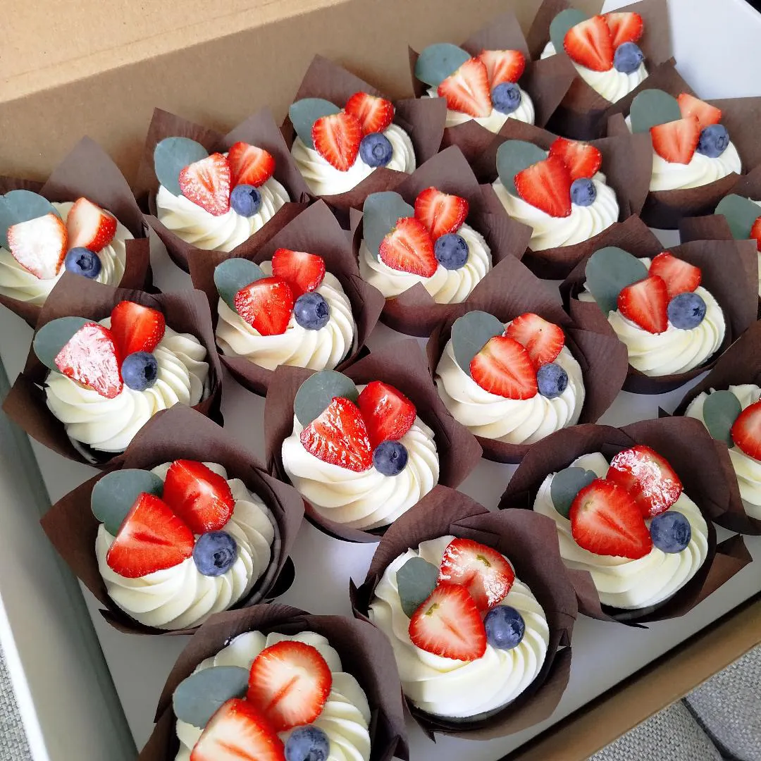 Капкейки с воздушным кремом и свежими ягодами.